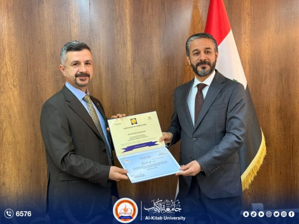 قدّم معالي وزير التعليم العالي والبحث العلمي الدكتور نعيم العبودي شهادة تقديرية إلى الدكتور أوميد عمر درويش ، معاون العميد للشؤون العلمية في كلية الصيدلة، تقديراً لتميزه واجتيازه بنجاح البرنامج التدريبي الدولي لبناء قدرات الباحثين، الذي استهدف (50) باحثاً من مختلف الجامعات العراقية.