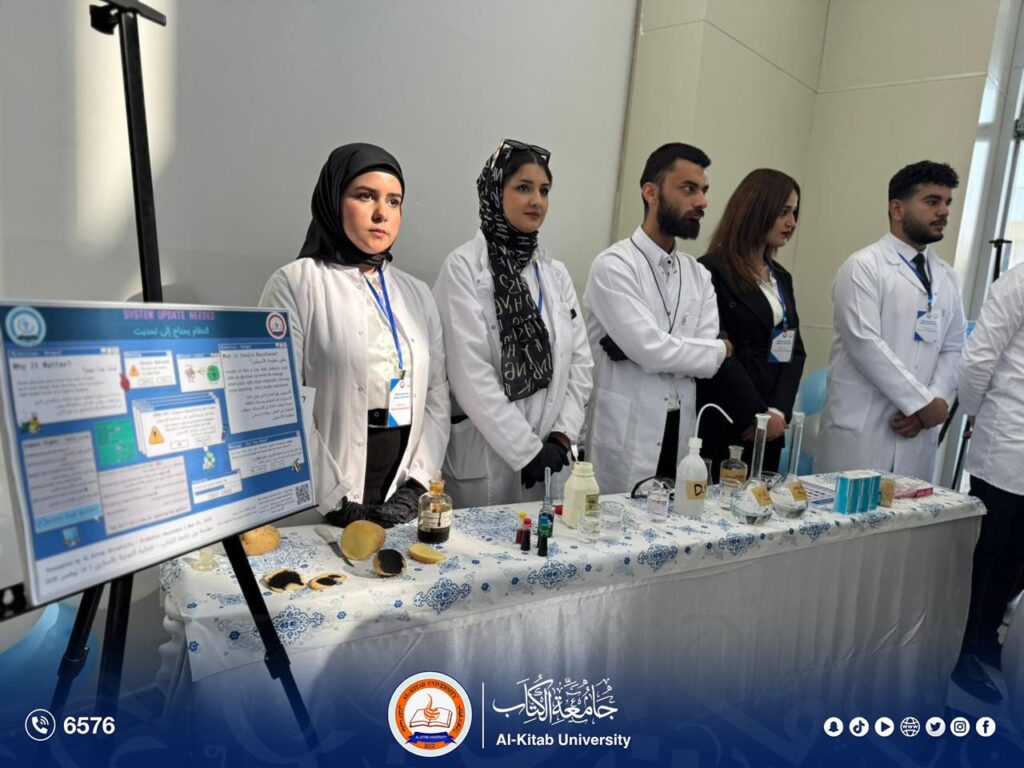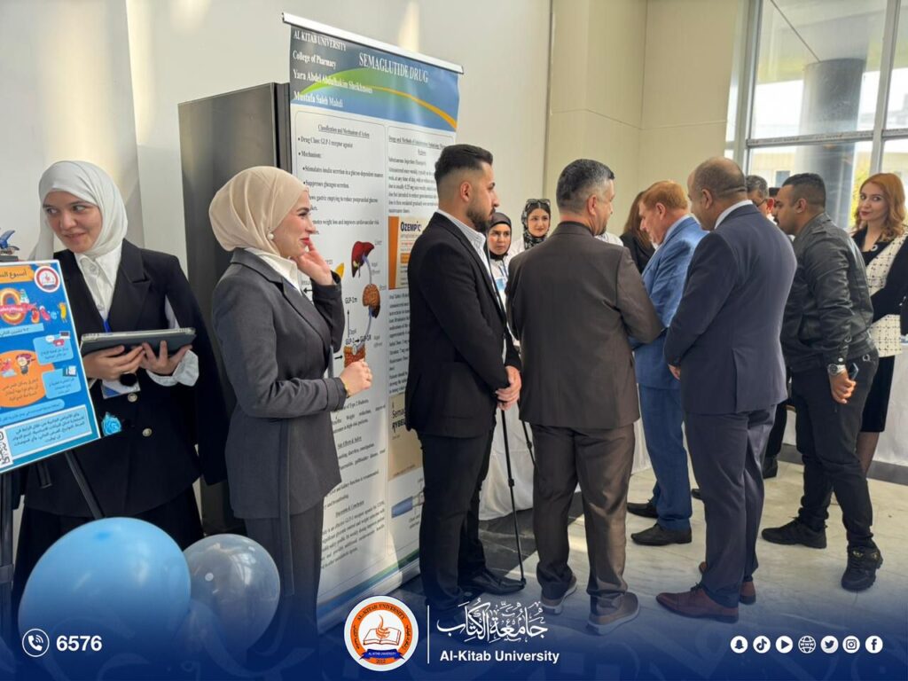 وتضمّن المعرض مجموعة من الأجنحة التوعوية، أبرزها جناح متخصص بـ التوعية الصحية حول مرض السكري، حيث قدّم الطلبة شروحات مفصلة عن أعراض المرض وأنواعه ومضاعفاته، إلى جانب استعراض أحدث العلاجات المتوفرة عالمياً والجرعات الدوائية المناسبة وفق الإرشادات الطبية الحديثة.