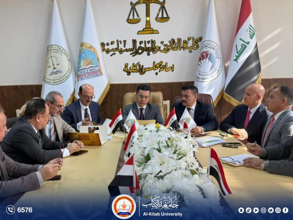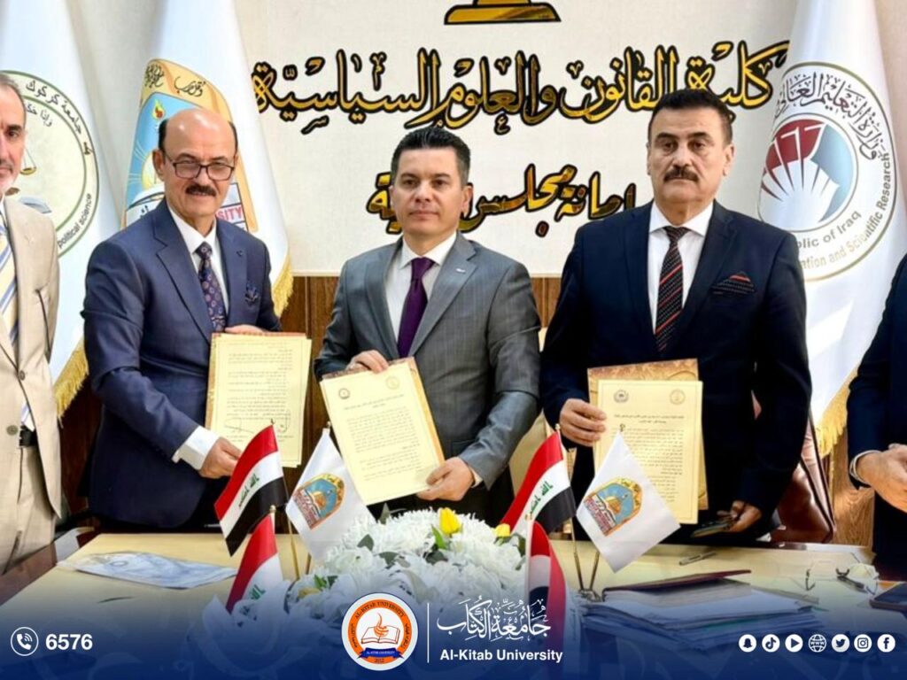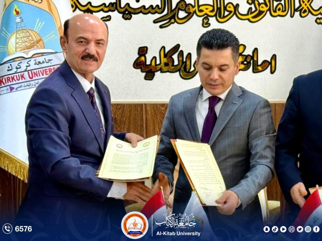 نُظمت في كلية القانون بجامعة كركوك، يوم الأحد 30 تشرين الثاني 2025، توقيع اتفاقية توأمة وتعاون علمي مع كلية القانون بجامعة الكتاب،
