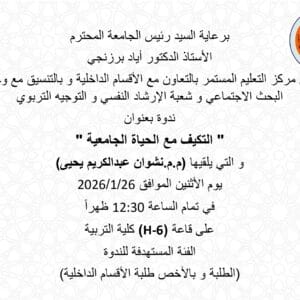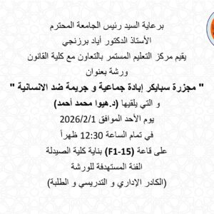 Under the patronage of the esteemed university president, Professor Dr. Ayad Barzanchy, the Continuing Education Center in cooperation with the College of Law, is organizing a workshop titled “How to Involve Youth in Decision-Making.” The workshop will be presented by Assistant Professor Dr. Raad Qasim Saleh and Lecturer Rebin Madhat Omar on Monday, January 19, 2026, at 12:30 PM in Hall H-10 at the College of Law. The target audience for the workshop is students