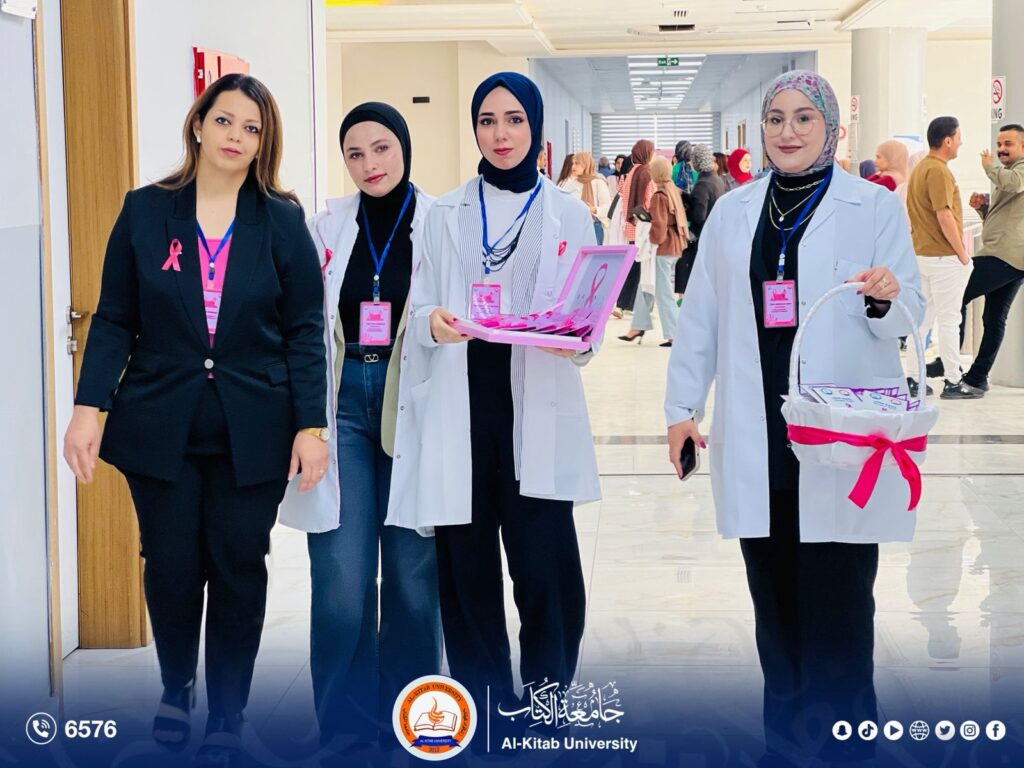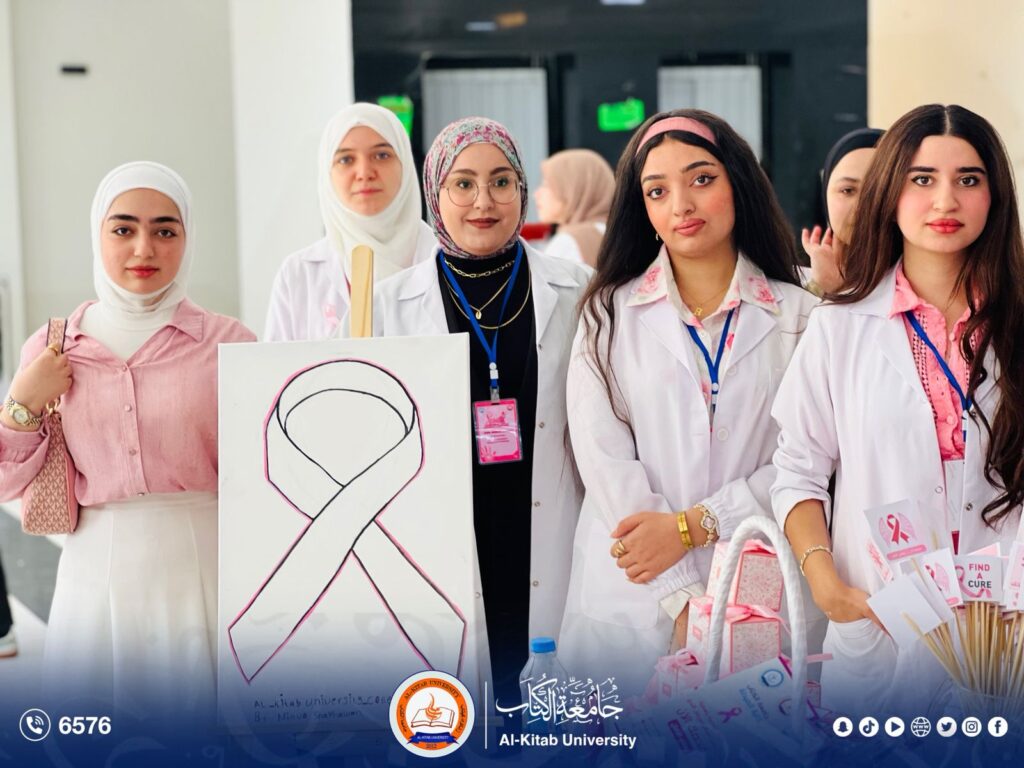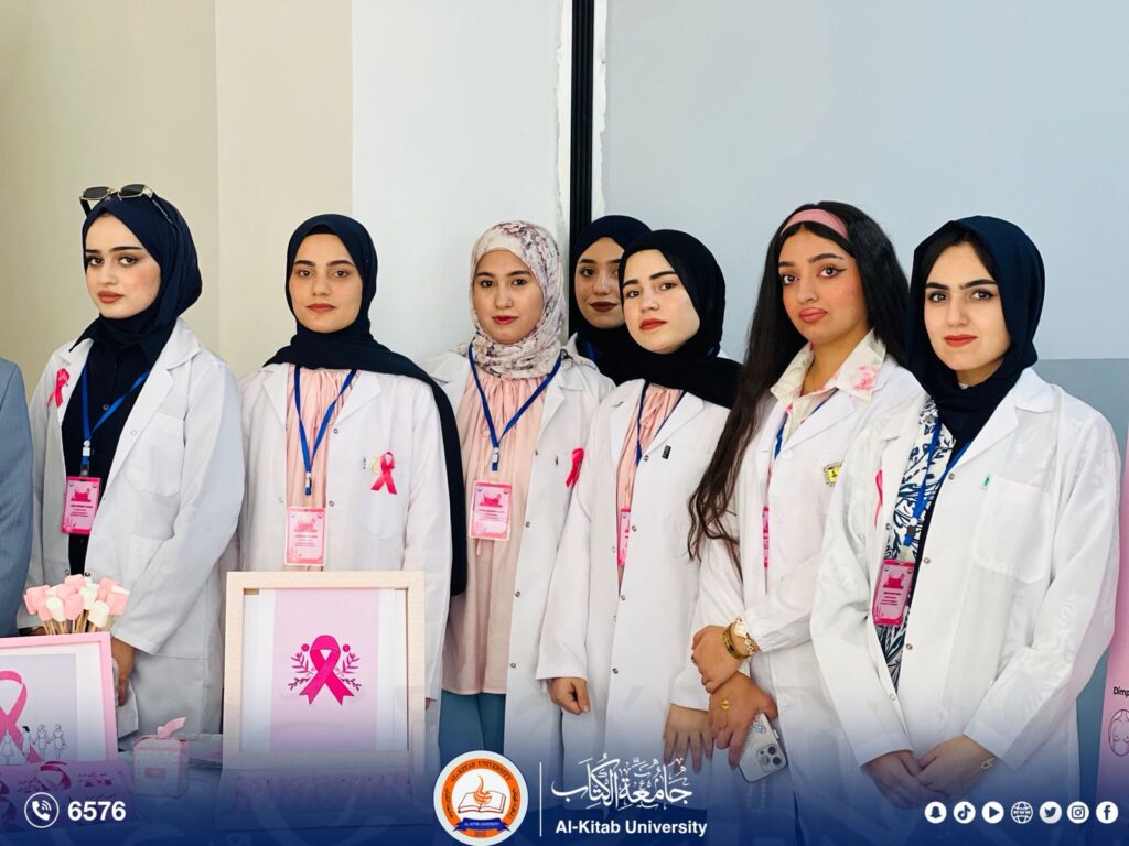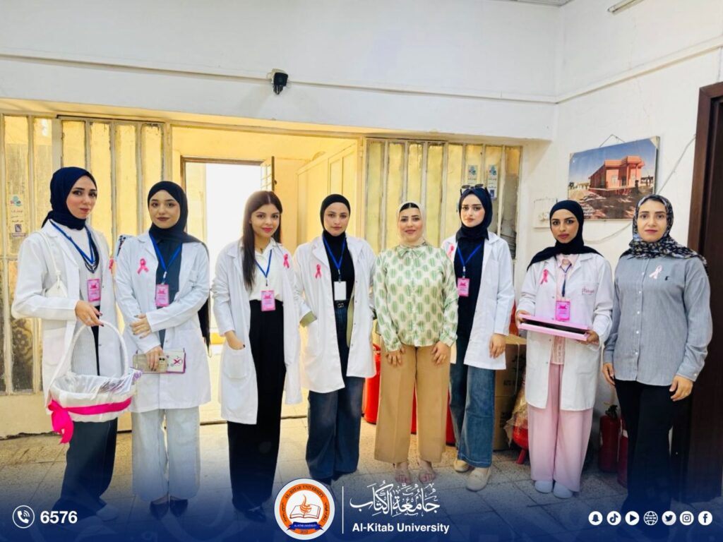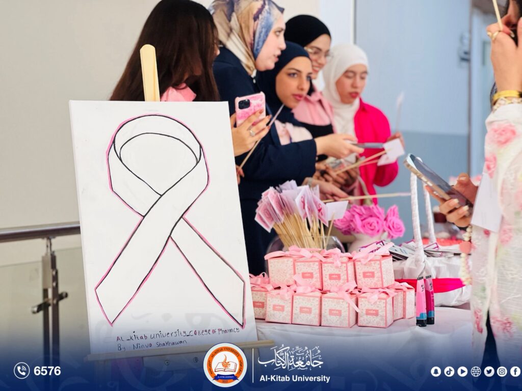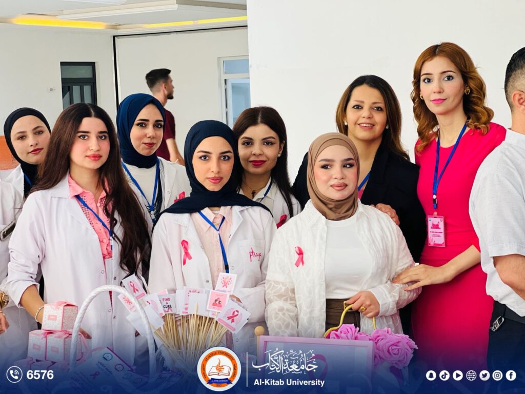 The College of Pharmacy at Al-Kitab University organized an awareness campaign on the importance of early detection of breast cancer, as part of its societal responsibility to spread health awareness and encourage women to prioritize regular check-ups.