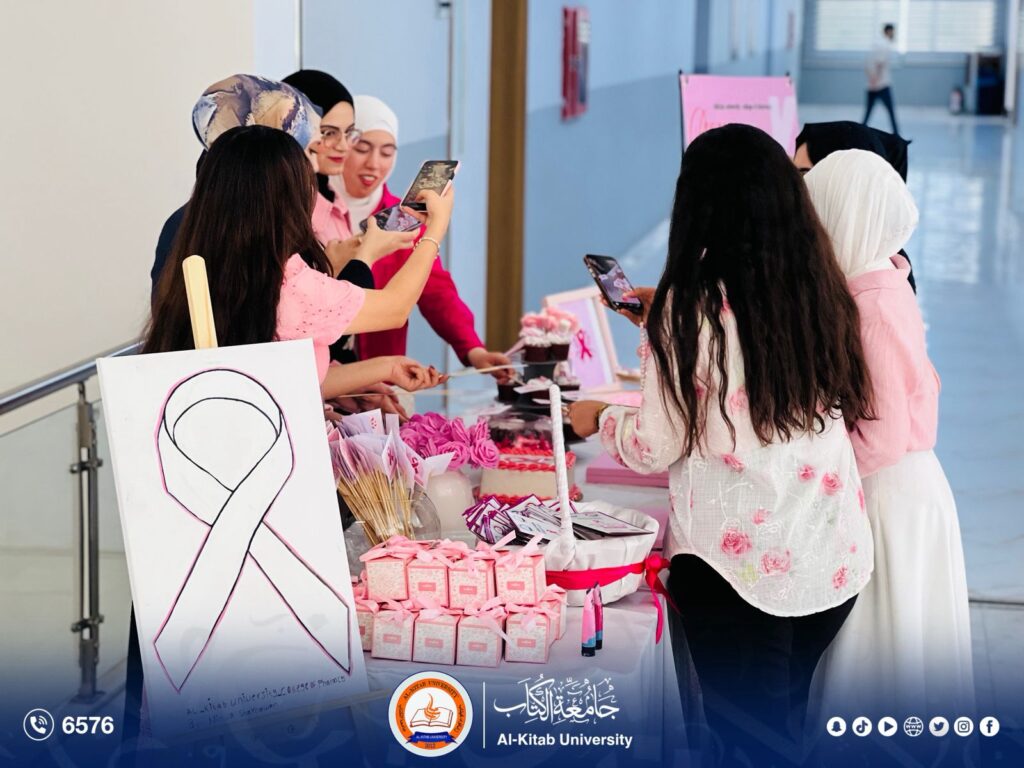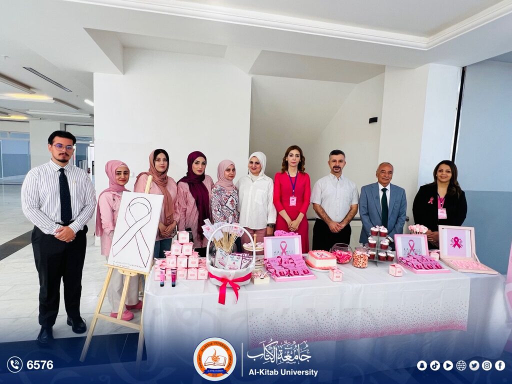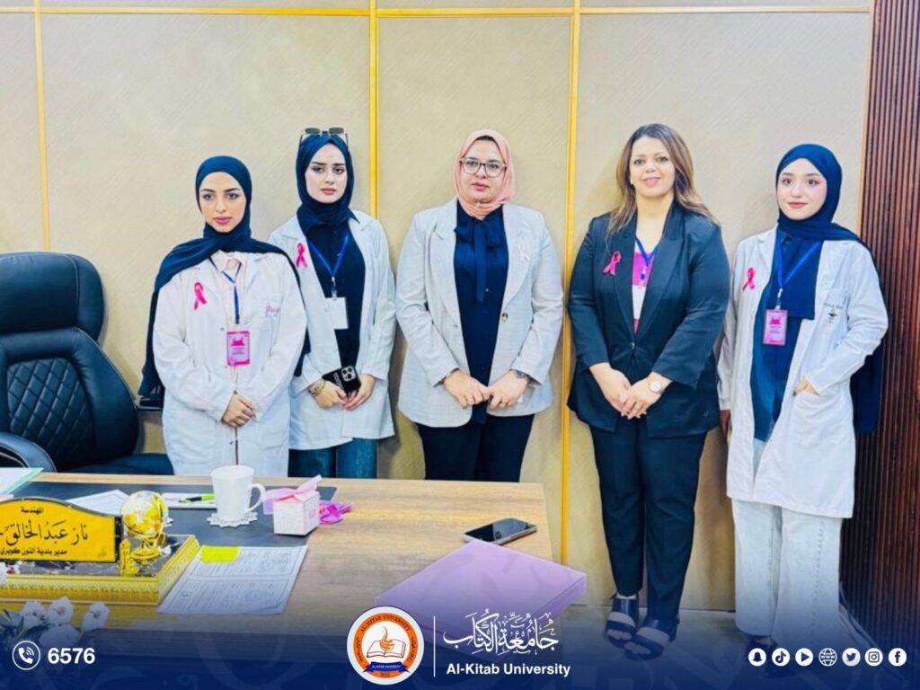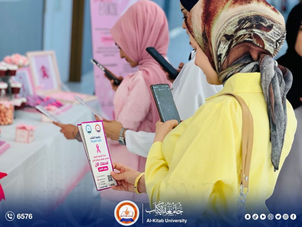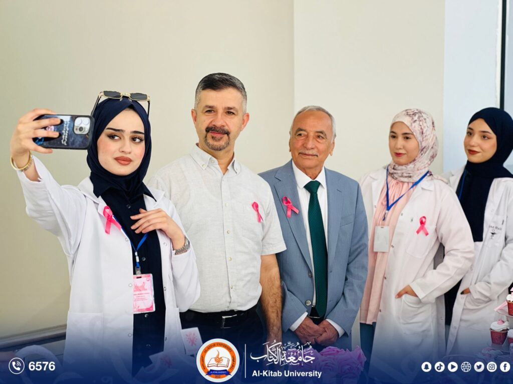 The College of Pharmacy at Al-Kitab University organized an awareness campaign on the importance of early detection of breast cancer, as part of its societal responsibility to spread health awareness and encourage women to prioritize regular check-ups.