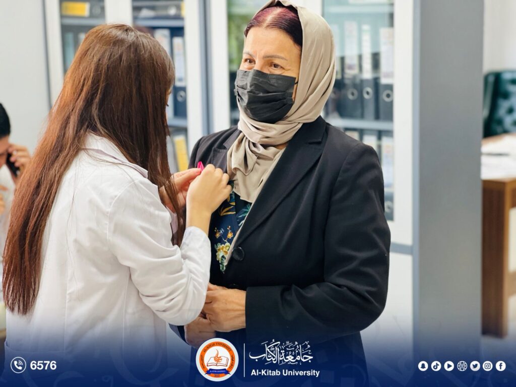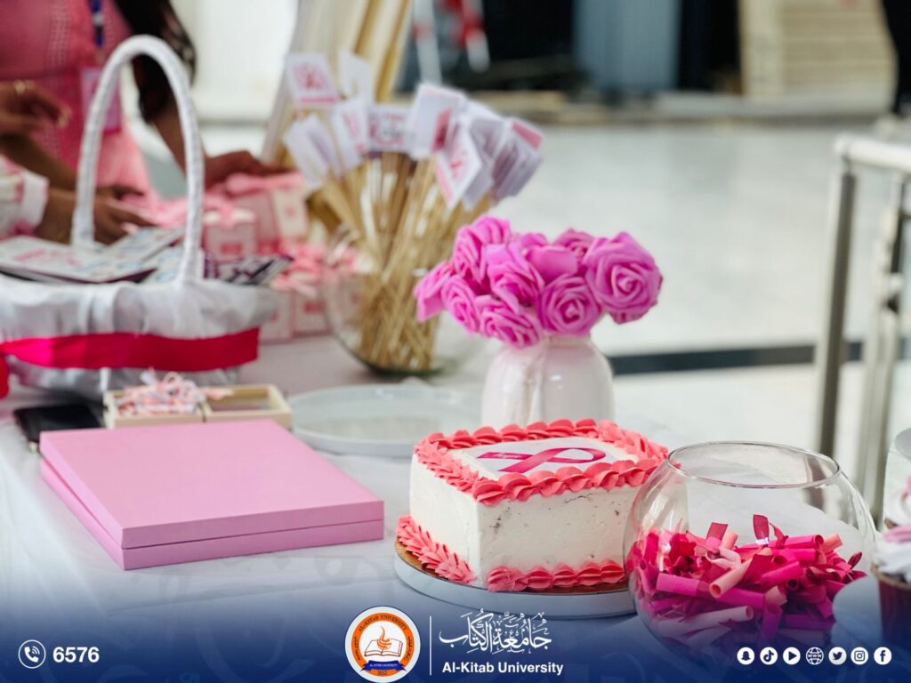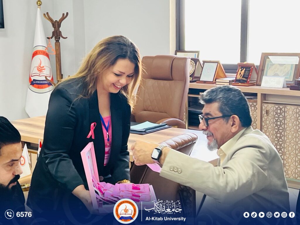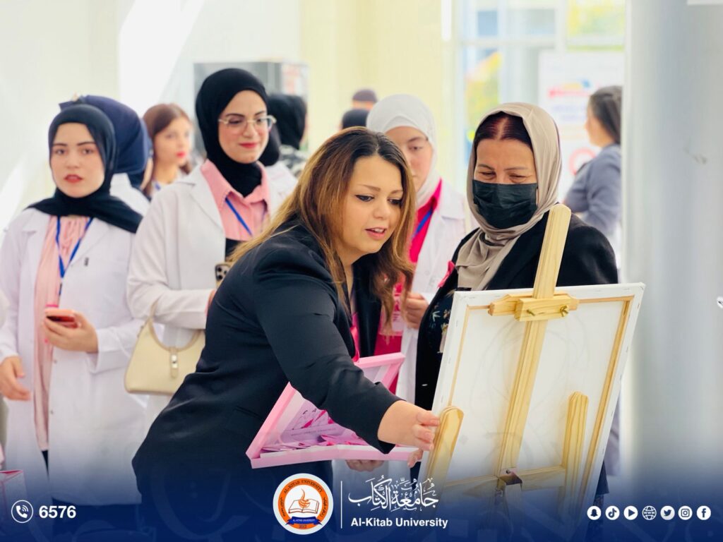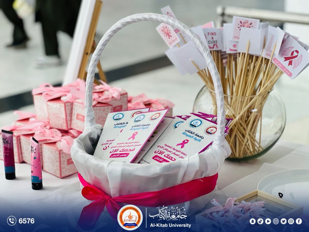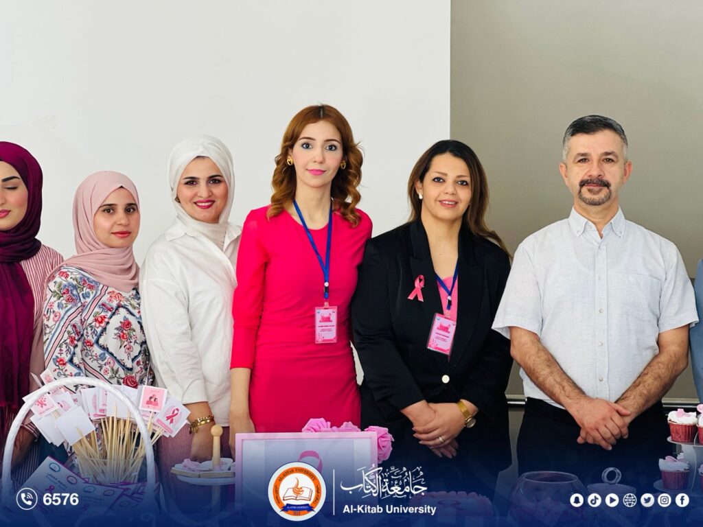 The College of Pharmacy at Al-Kitab University organized an awareness campaign on the importance of early detection of breast cancer, as part of its societal responsibility to spread health awareness and encourage women to prioritize regular check-ups.
