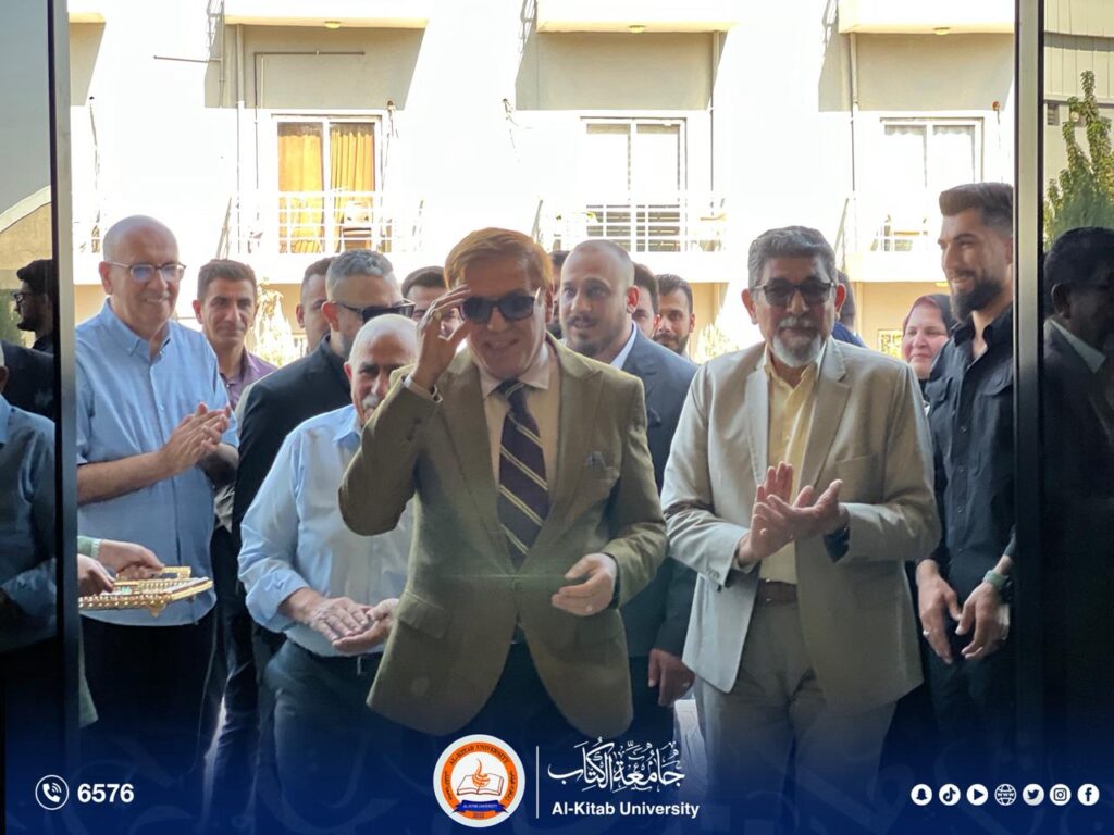 The President of Al-Kitab University, Professor Dr. Ayad Barznchy, accompanied by the Administrative Assistant, Dr. Abdul-Ilah Hameed, inaugurated the scientific exhibition organized by the Department of Life Sciences in the College of Science at Al-Kitab University.