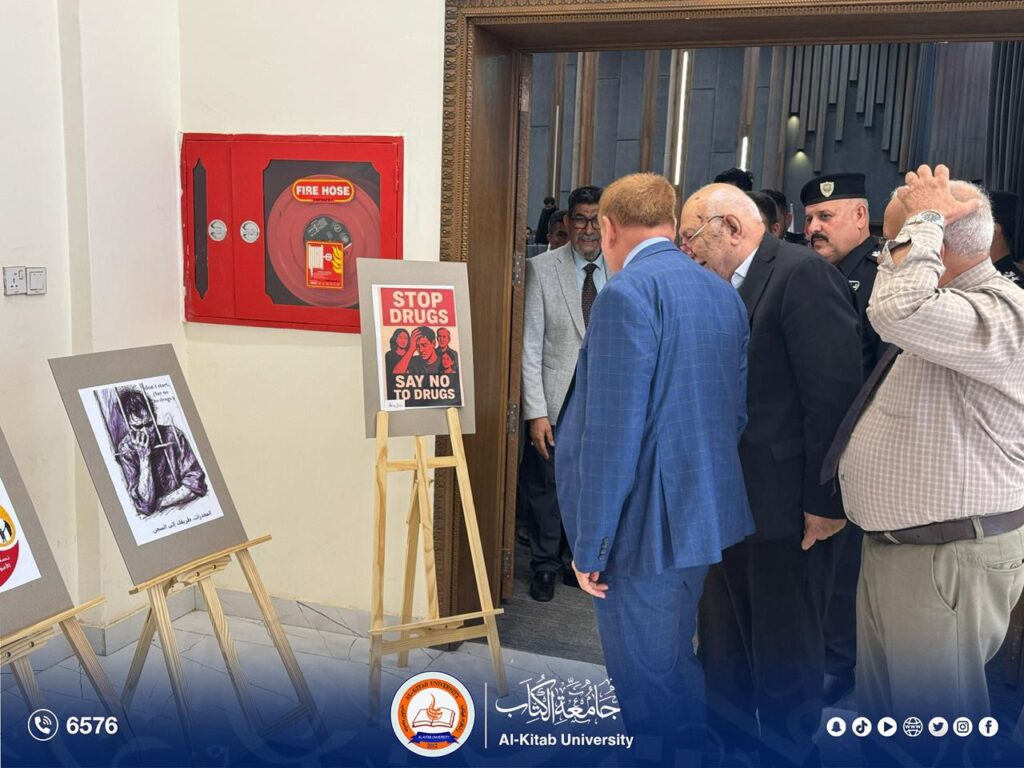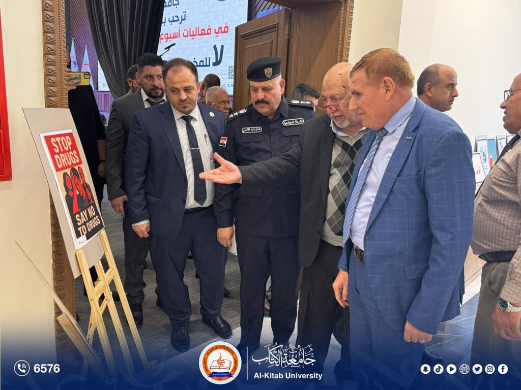 Al-Kitab University, in cooperation with the Ministry of Interior / Directorate of Narcotics Affairs in Kirkuk and the Community Police, has continued the activities of the Iraqi Anti-Drug Week, whose first events were launched on the opening day with wide participation from students and faculty members. This national initiative aims to enhance societal awareness of the dangers of drugs and to instill a culture of prevention among young people.