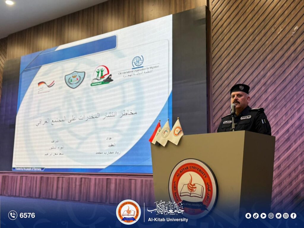• The second lecture was delivered by Colonel Adnan Al-Qasimi, Director of the Community Police in Kirkuk. He addressed the field aspects of the work of security agencies, mechanisms for dealing with cases of drug abuse and promotion, and the importance of community cooperation in limiting the spread of drugs.