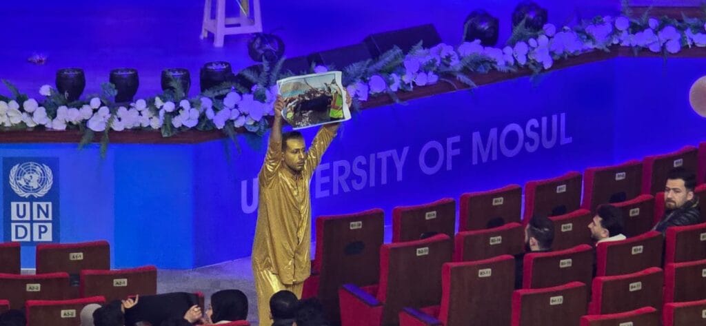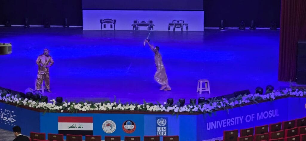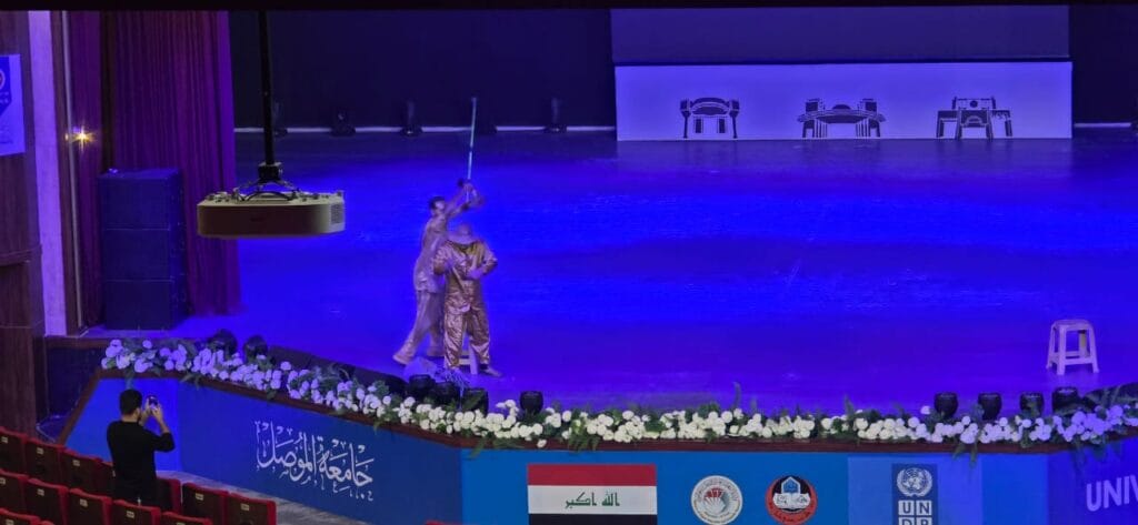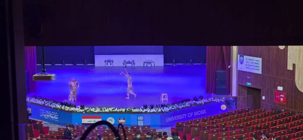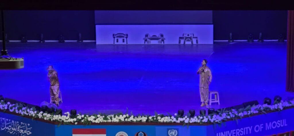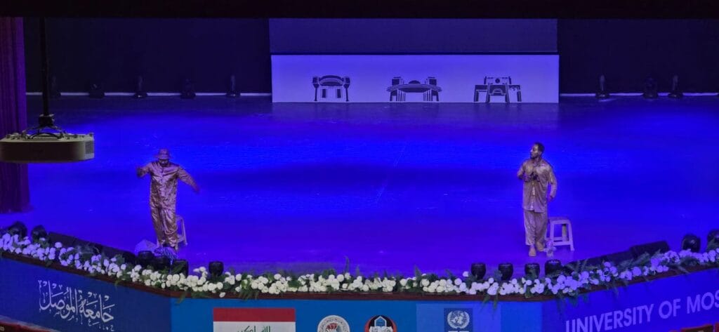 This performance comes as part of distinguished participations in the current edition of the festival, which witnesses competition and participation from 27 Iraqi universities presenting diverse theatrical works that highlight students’ talents and creativity in the field of theatrical arts.