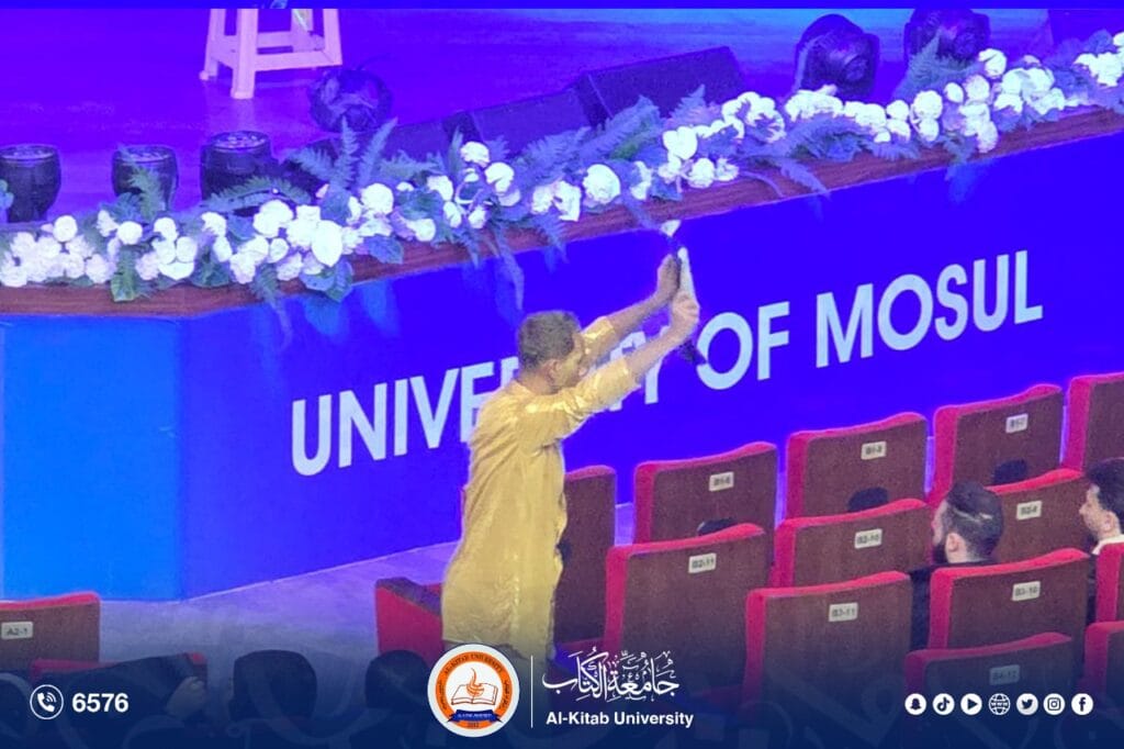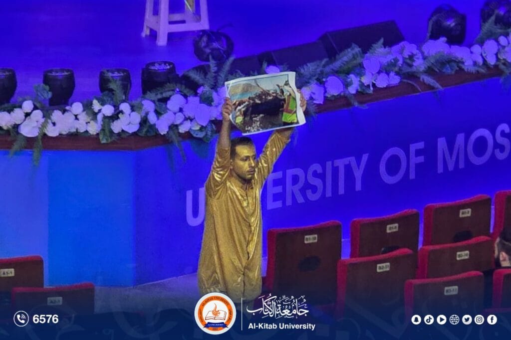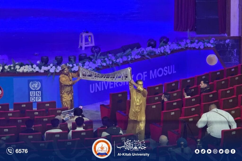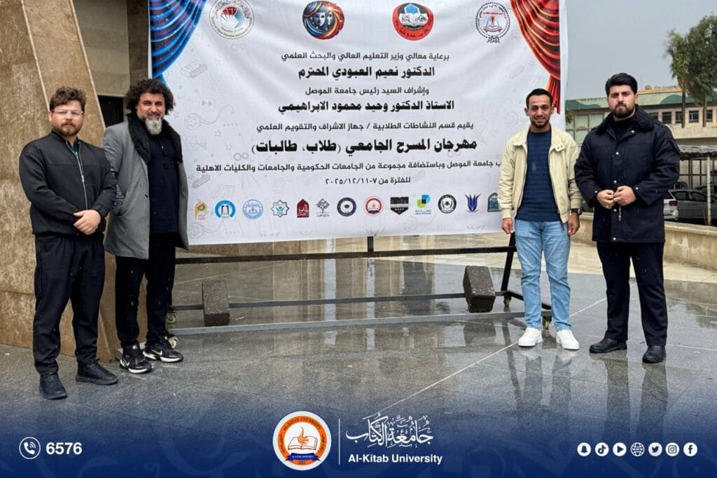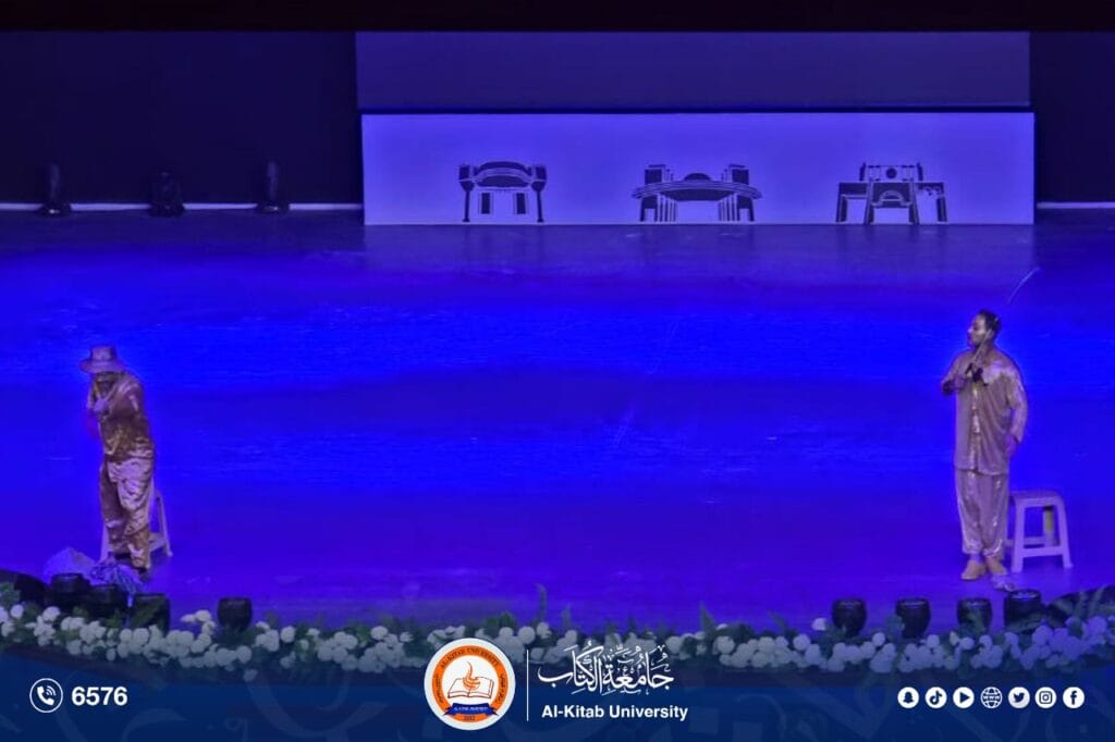 Al-Kitab University’s theater troupe participated in the activities of the University Theater Festival held in the city of Mosul, presenting its theatrical performance “Messages from the Sea.” This theatrical work is based on an idea by Hunar Tahir and supervised by Najat Najm, produced by Al-Kitab University and the university’s theater troupe.