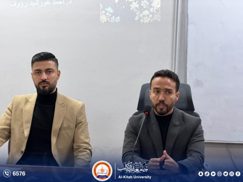 The Human Rights Division at Al-Kitab University, in cooperation with the College of Education, organized a scientific seminar titled “Human Rights in Islamic Sharia.” The seminar was delivered by Assistant Lecturer Ahmed Adel and attended by a select group of university professors and staff, along with a number of students.