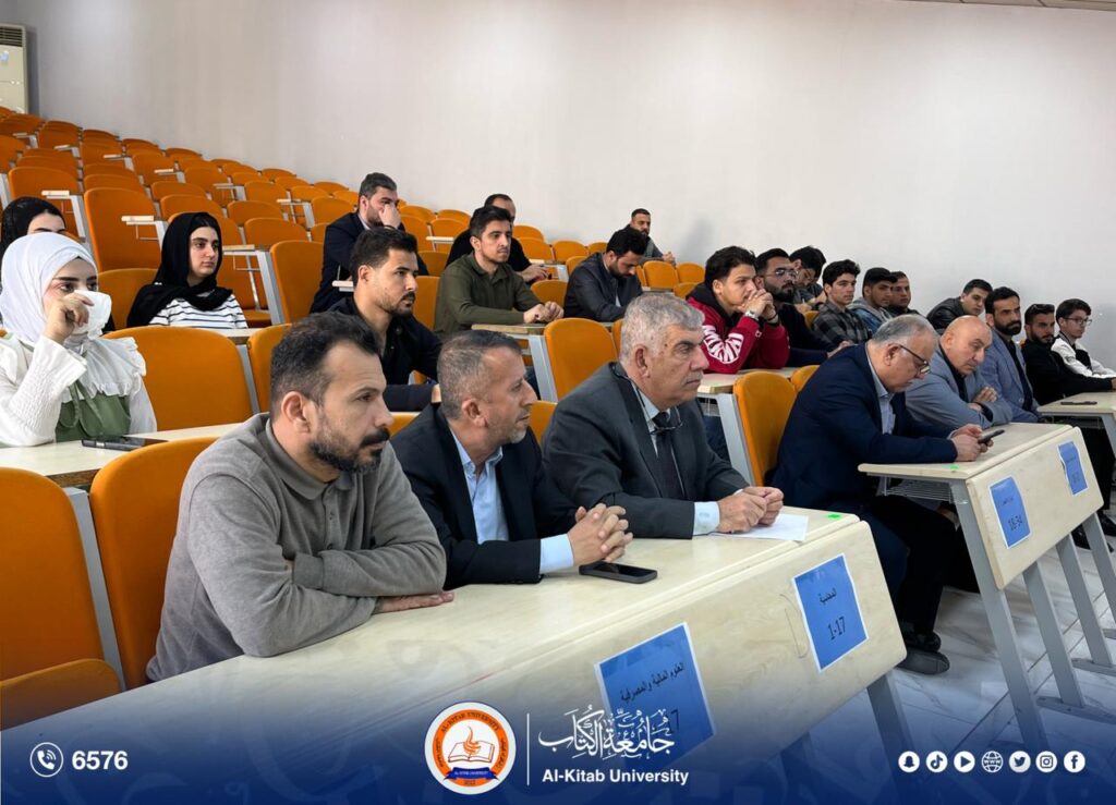 The Continuing Education Center, in cooperation with the College of Administrative and Financial Sciences at Al-Kitab University, held a scientific seminar titled “The Role of Youth in Achieving Sustainable Development,” which was delivered by Professor Dr. Sami Dhiyab Mahal, attended by a number of faculty members, university staff, and students.