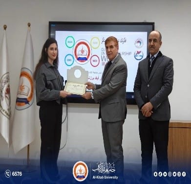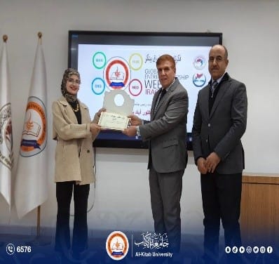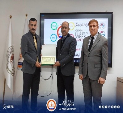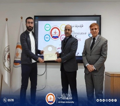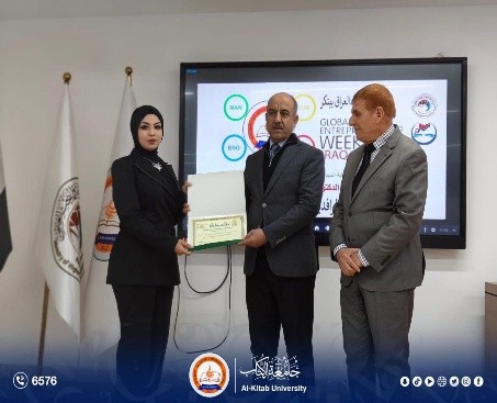 On the third day of Global Entrepreneurship Week, Al-Kitab University, represented by its President Prof. Dr. Ayad Barznchy and attended by Scientific Assistant Dr. Hazaa Dawood, honored the students who participated in the Global Entrepreneurship Week hosted by the University of Kirkuk from February 8–12, with wide participation from universities and academic institutions.